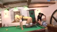 In the dimly lit room, a stunning blonde maid with plump tits and round ass, wearing a tight and sexy outfit that left nothing to the imagination, stands confidently next to a luxurious pool table, her stockings accentuating her long legs.A couple enters, intrigued by the provocative scene before them, as the mans eyes immediately fixate on the maids wet pussy exposed on the polished surface of the pool table, his cock already throbbing in anticipation.The blonde maid, with her cunt glistening and cunt lips swollen from recent pleasure, stands spreadeagle over the pool table as the man gets down on his knees, eager to fulfill his carnal desires.As he worships her pussy, he starts by gently flicking her clit with his tongue, making her horny labia tremble with desire while her cunt juices flow even more wetly, dripping onto the table beneath them.Inching closer, he proceeds to penetrate her with his hard cock, filling up her vagina as he fucks the blonde maid on the pool table.She groans in delight, feeling her cunt muscles contracting around his penis while the couples passion is further ignited by their horny session.The blonde maid lets out a passionate scream of orgasmic pleasure, cumming hard right in front of them all.As the man continues to pound away on this hot slut, he cant resist her wet cunt and tight ass, so he decides to penetrate it next while the blonde maid moans out in ecstasy.The room fills with a crescendo of blended cunt sounds and heavy breathing, creating an unforgettable atmosphere.The man soon pulls out, and without missing a beat, the couple proceeds to eat her out together both tongue and fingers intermingling in this glorious cunnilingus spectacle.The womans blonde pussy becomes their playground, the room now filled with a chorus of cunts, moans, and labial sounds as they all climax one after another.Finally, satisfied with the wild and carnal display of lust, the couple collapses on top of each other, covered in each others semen and juices.As the room clears and the lights go up, a satisfied sigh escapes from everyone involved.The blonde maid lies there, exhausted yet fulfilled, her pussy still glistening wetly on the pool table below her.